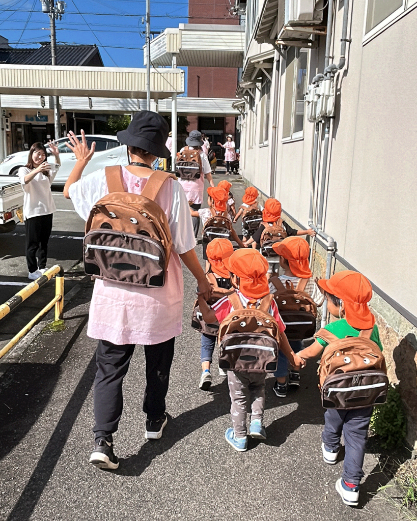 株式会社タカアキ社長(中央)とカバンストリート保育園のみさなん